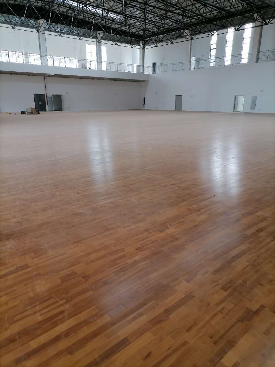 球场专用地板则是广东运动地板的专业款,针对篮球、排球高强度运动设计:22mm 厚北美硬枫木基材,冲击吸收 48%,能缓冲运动员落地压力;单块承重 800kg/㎡,可稳固支撑篮球架;表层体育木地板漆为 “运动哑光款”,摩擦系数 0.7-0.8,广州某中学使用后,学生反馈 “急停不打滑,跑跳更安心”,成为广东赛事级场馆的核心选择,与复合运动地板形成 “专业 + 基础” 的采购梯度。