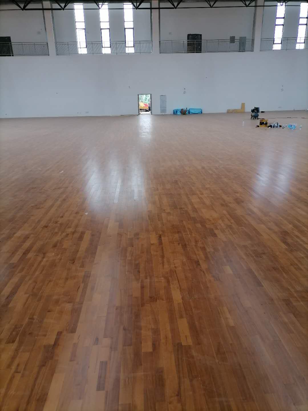 某小学体育教研组长称 “选用立美学校运动木地板铺设室内场馆,地板采用轻量化设计,既满足基础运动弹性需求,又降低场地承重压力;同时搭配专用踢脚线,整体风格简洁大方,适配校园环境”。
