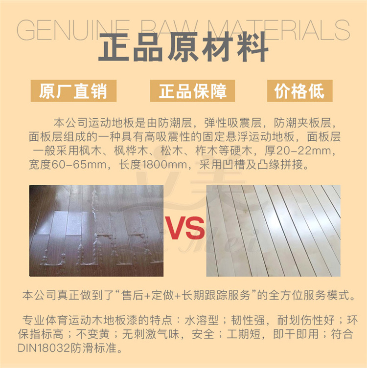 实木运动地板是一种具有优良的承载性能,高吸震性能,抗变形性能的运动木地板系统,并且其表面的摩擦系数必须达到0.4-0.7,太滑或太涩都会对运动员造成伤害。